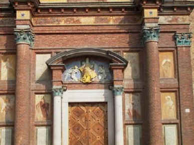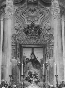 Questo bel dipinto, incorniciato in tempi recenti, è peraltro datato dagli studiosi d'arte come eseguito nel sec. XV, quindi questa datazione stride non poco con l'antica tradizione popolare che, prima d'ogni chiesa, parla di un solitario e singolo pilone votivo. Comunque sia, l'edificio del 1735 con pianta a croce greca e interni dominati dall'ordine corinzio, è quello che tutt'oggi possiamo ammirare. Invece la facciata fu progettata dall'ing. Caselli ed eseguita tra il 1888-89. Su questa trovarono razionale disposizione 10 affreschi di Paolo Gaidano raffiguranti santi, angeli e l'Addolorata. Sul portale il Caselli ideò una bella lunetta in ceramica policroma raffigurante San Desiderio in mezzo a due angeli, il pittore Silvio Reordino eseguì le parti decorative